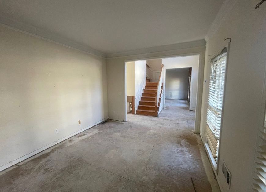 After the initial inspection was completed, the contractors immediately started the demolition process. It was important to get any unsalvageable materials out of the house right away to prevent any mold growth. They used their moisture meters to identify areas of heavy water damage. Flooring, ceilings, and walls that had suffered too much damage were removed, but anything that could be dried and restored to its original condition was kept.